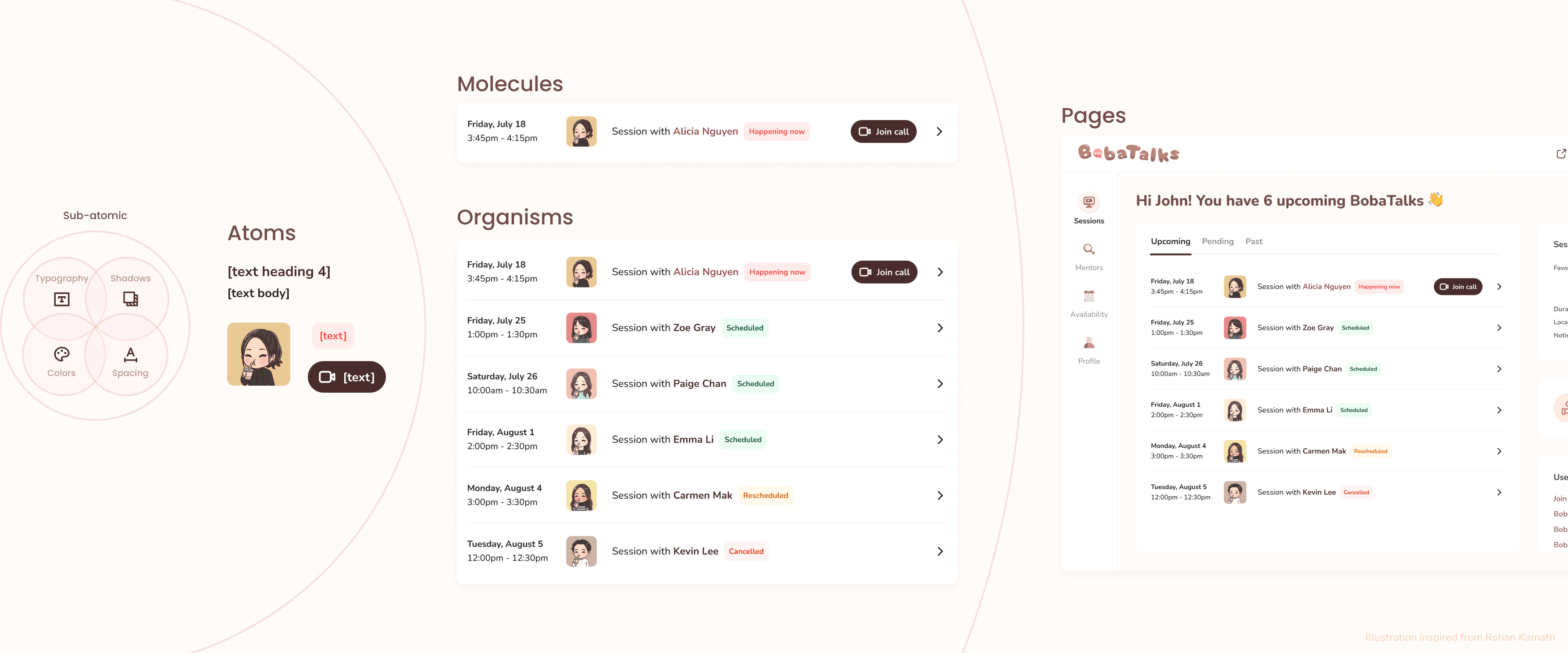 BobaTalks is a mentorship platform that connects students and professionals for structured career guidance. As the platform expanded, multiple product verticals (mentee dashboard, mentor tools, sessions, chat, scheduling) emerged — each with its own look and feel.
