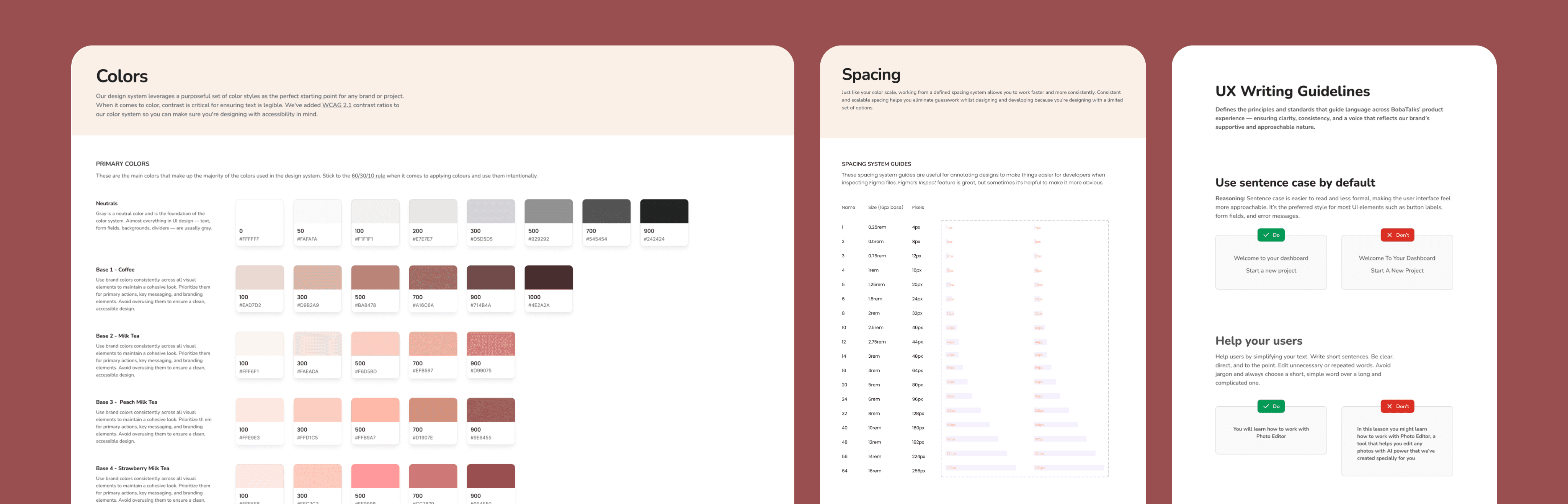This design system provides a comprehensive set of design guidelines, components, and resources that empower developers and designers to build consistent interfaces that align with BobaTalk's brand standards.