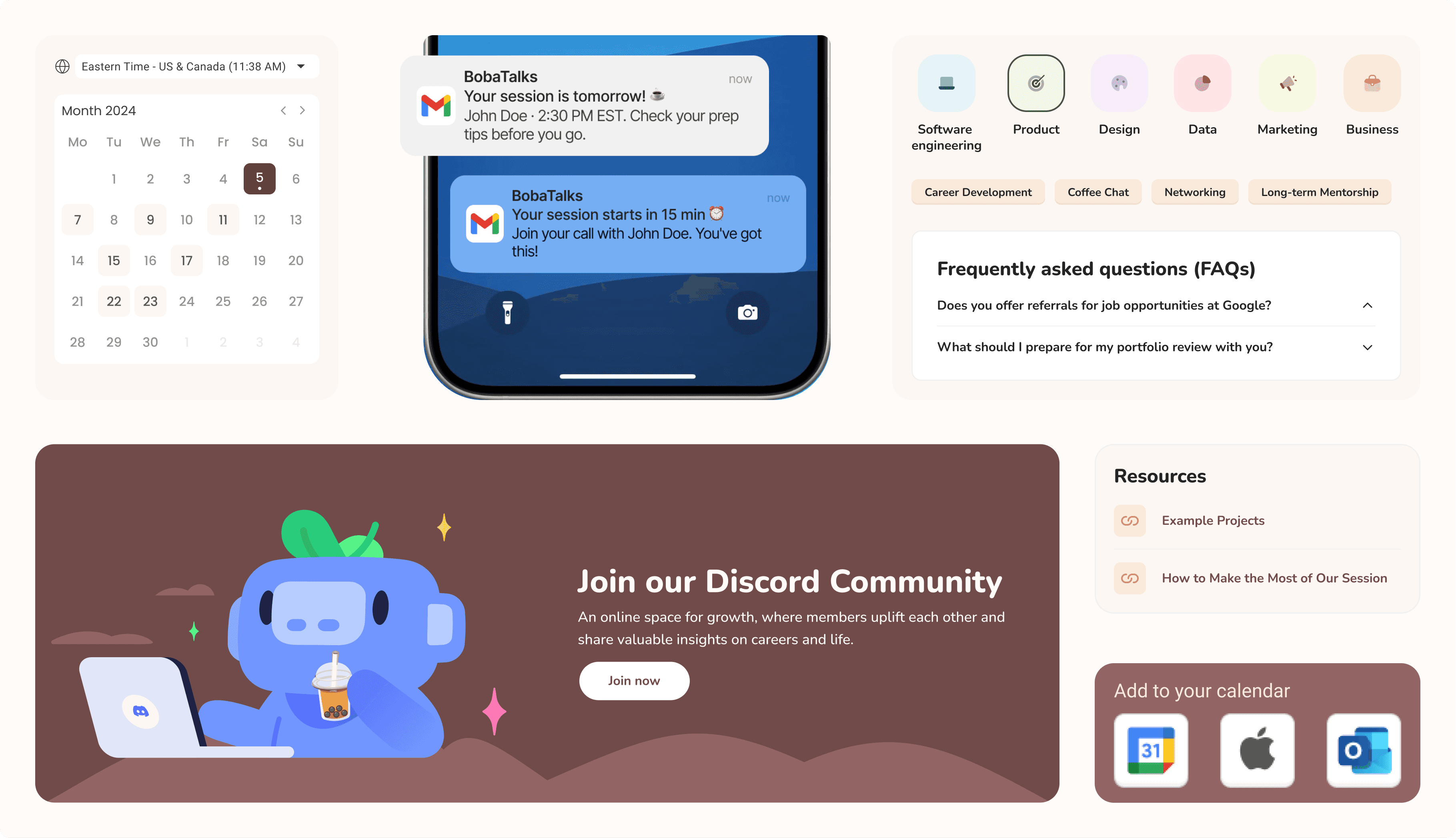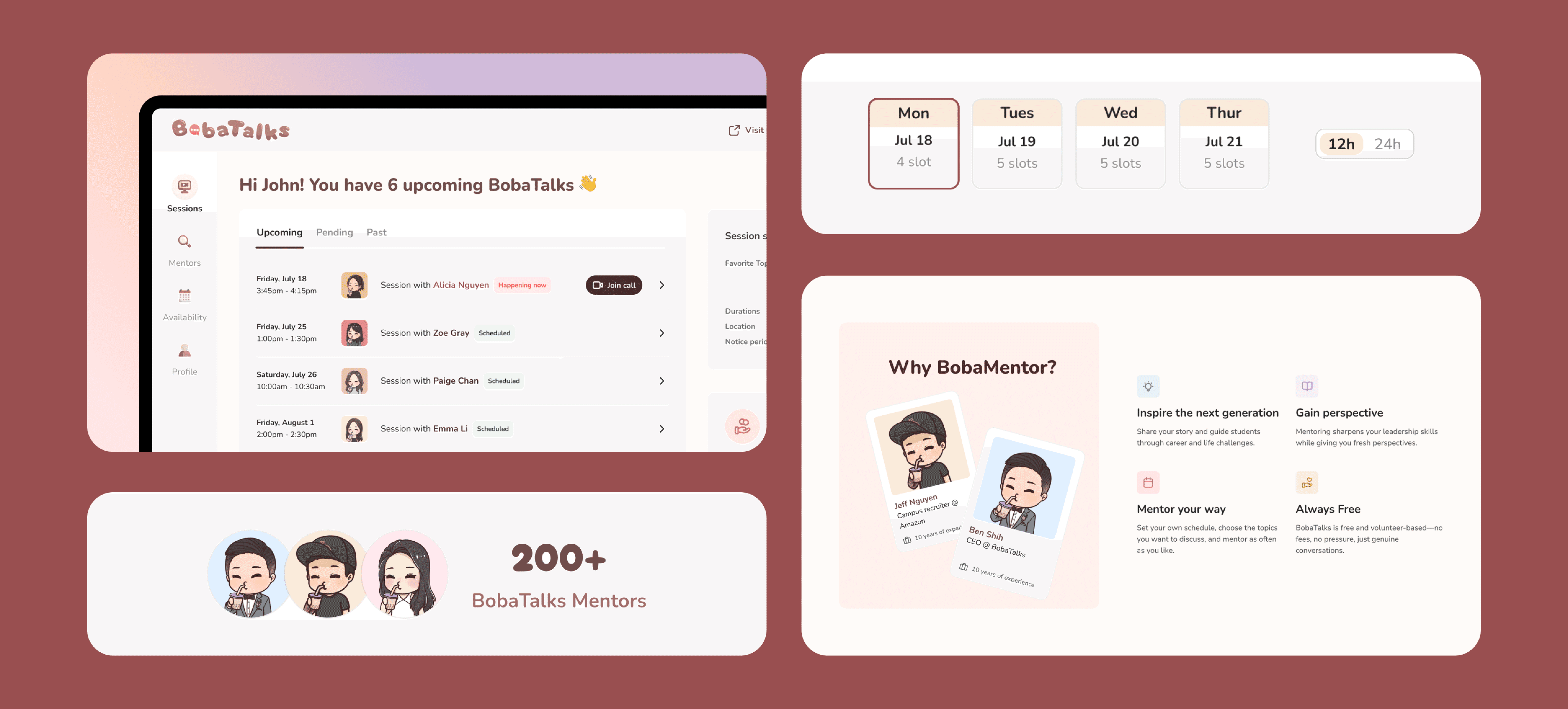 BobaTalks is a free mentorship platform — 10,000+ students, 200+ industry professionals, built entirely on community.