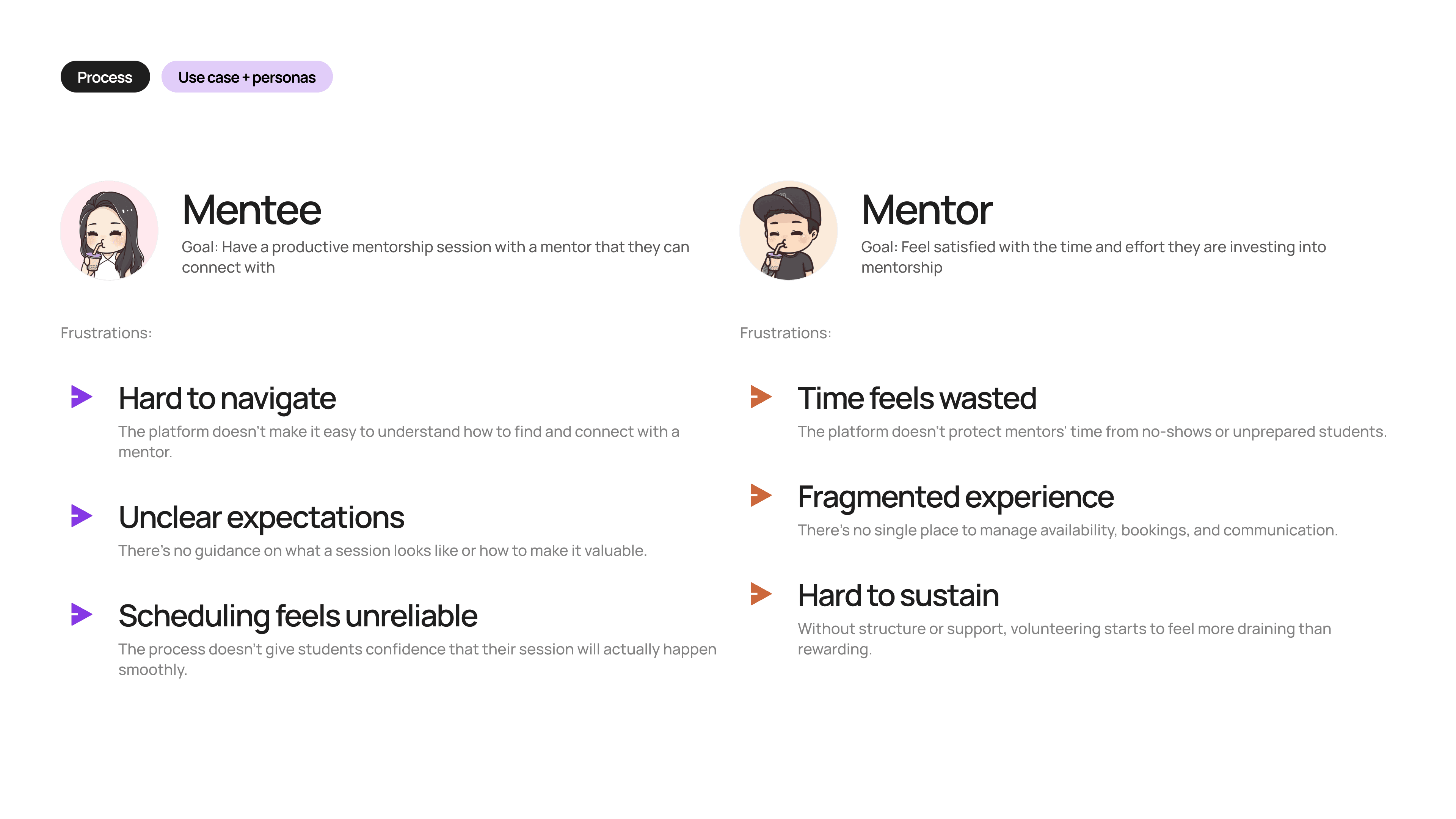 Sessions were misaligned, mentors showed up without knowing what they needed. Mentees showed up without knowing what to say or how to prepare.
