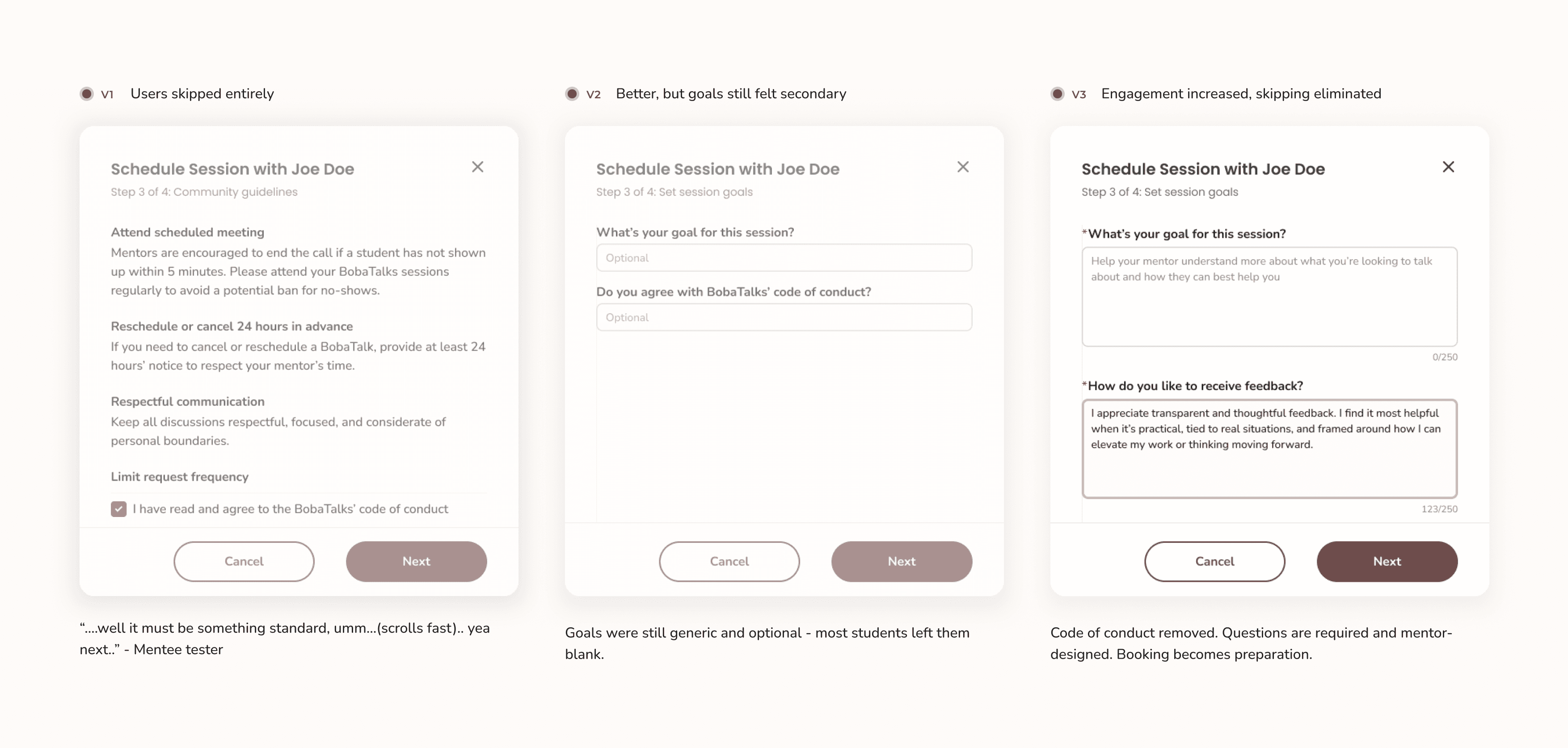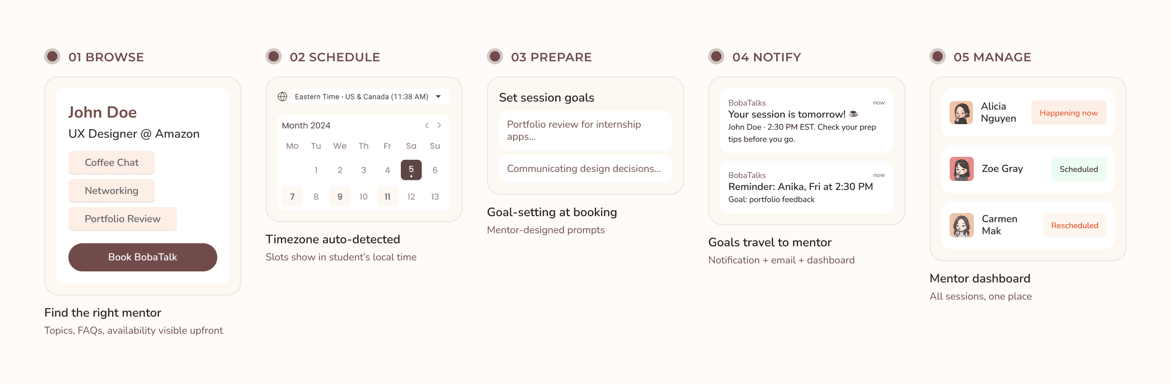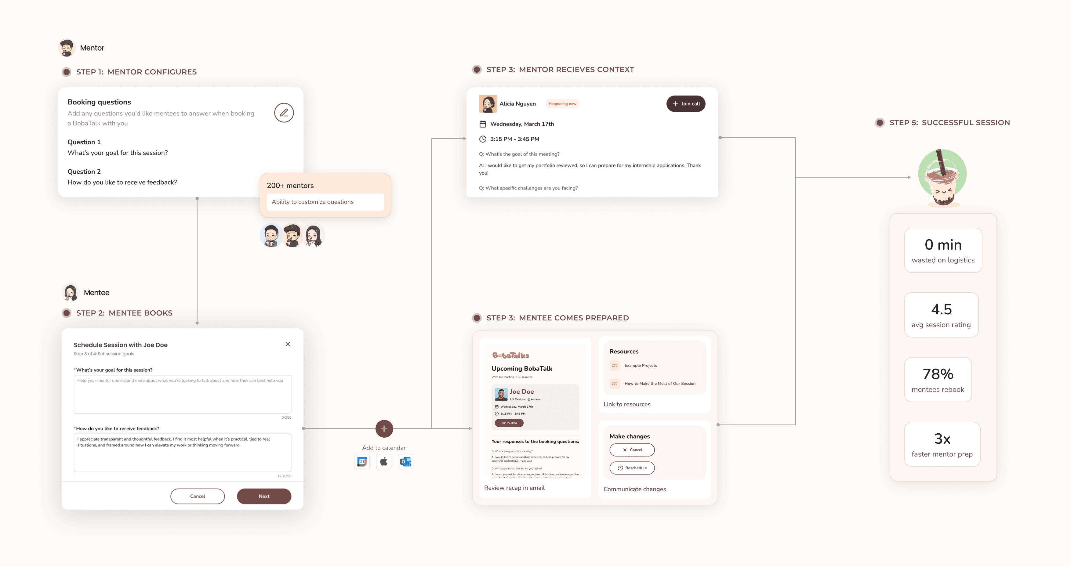 How might we design a booking flow where both the mentor and mentee arrive fully prepared for every session?