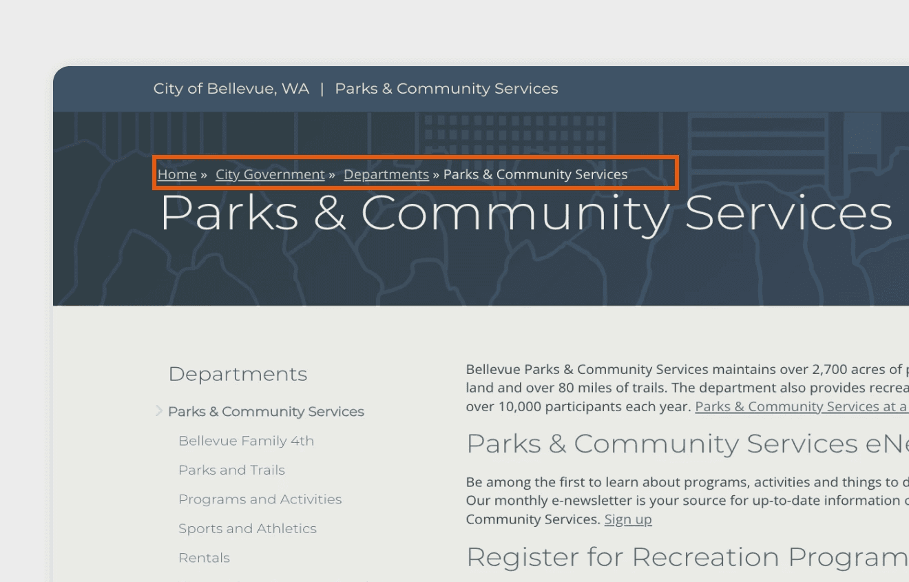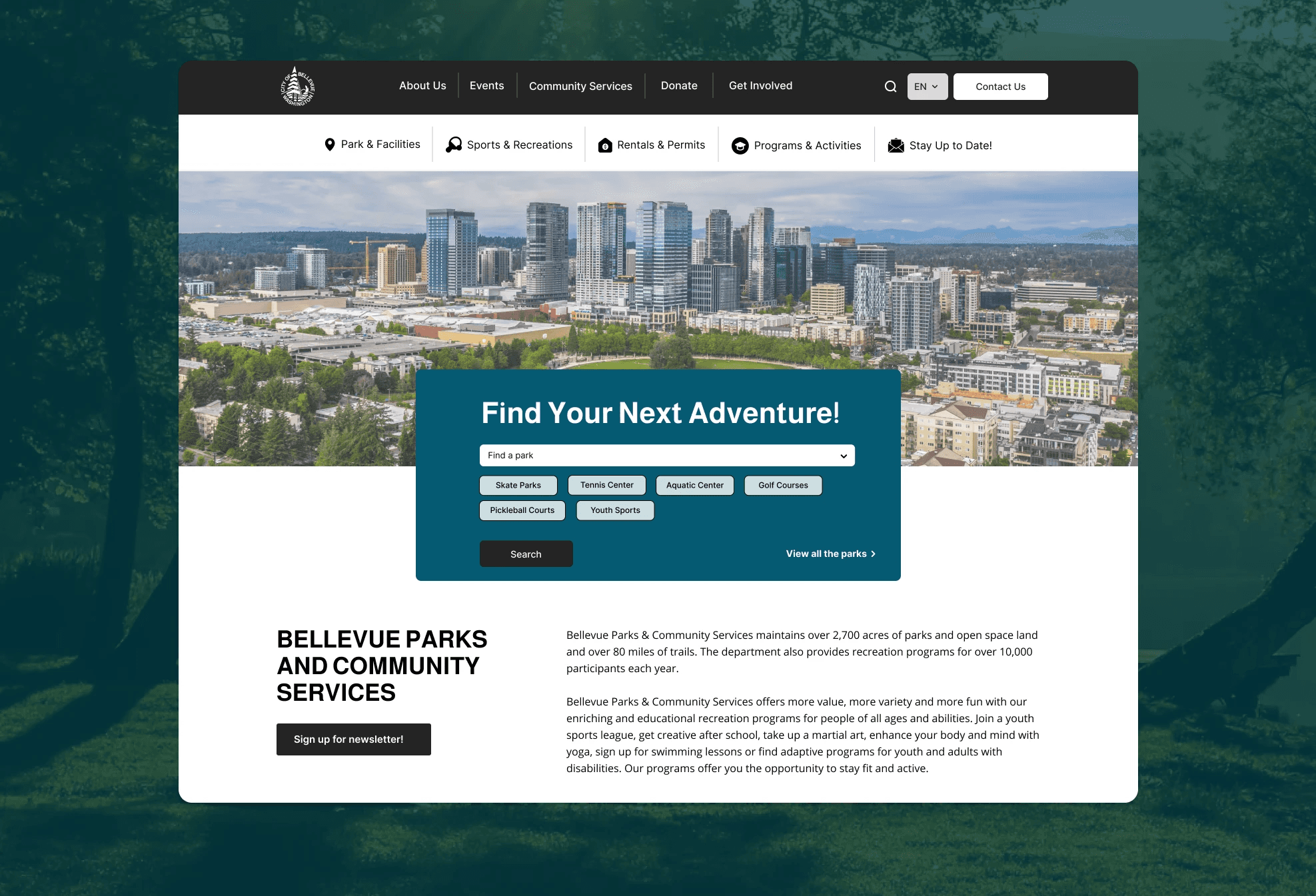 Redesigning the Information Architecture to help people navigate Parks and City Services.