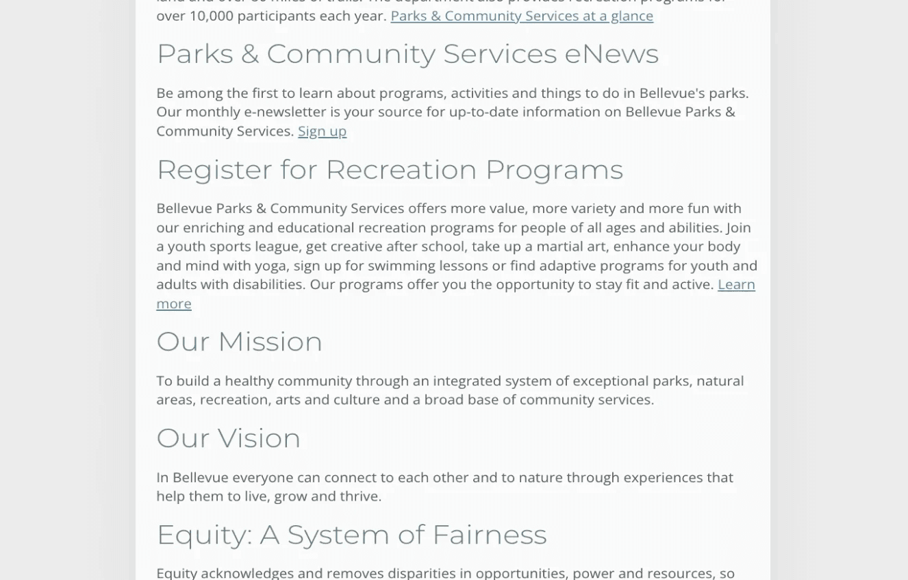 For my capstone project, I worked with the City of Bellevue’s Parks and Community Services Department to improve how information is organized on their website. The goal was to make it easier for people to find what they need.