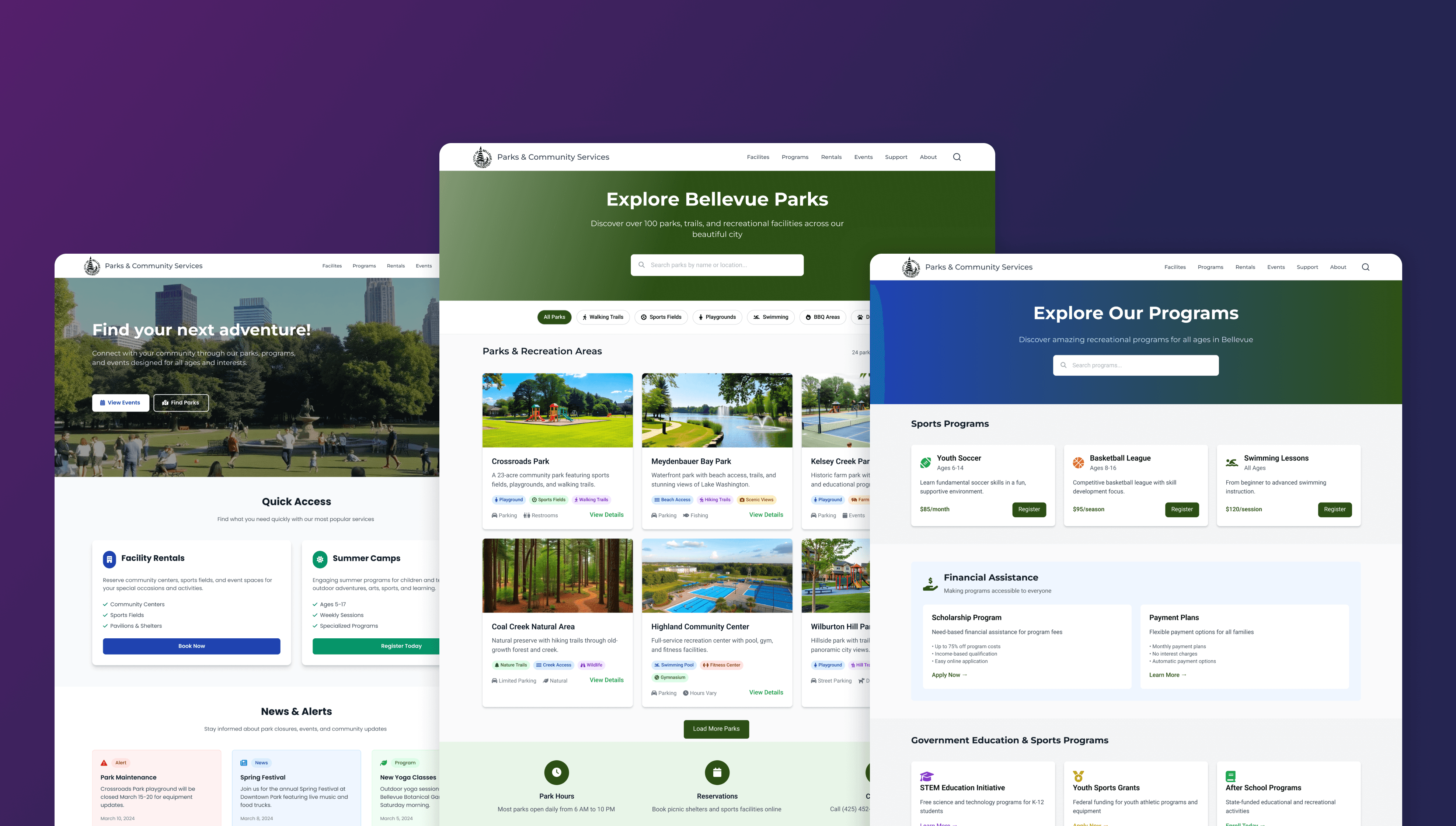 The website supports a wide range of user goals—ranging from program registration and park exploration to facility rentals and community support access.