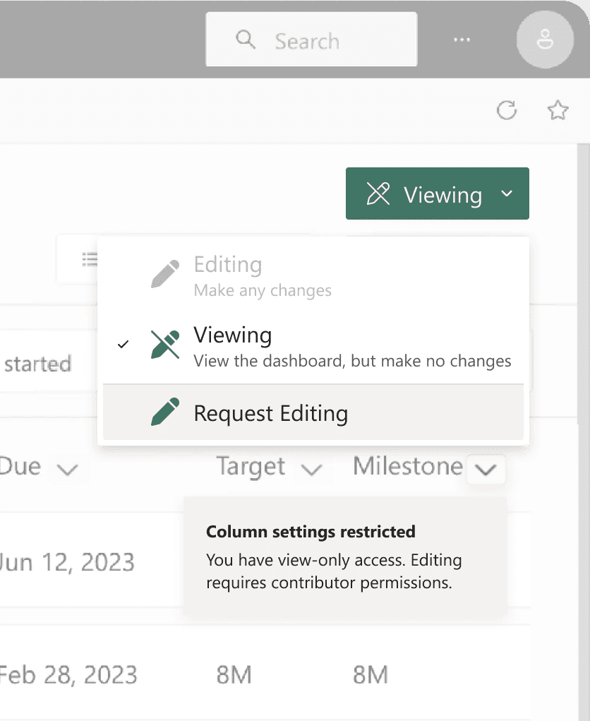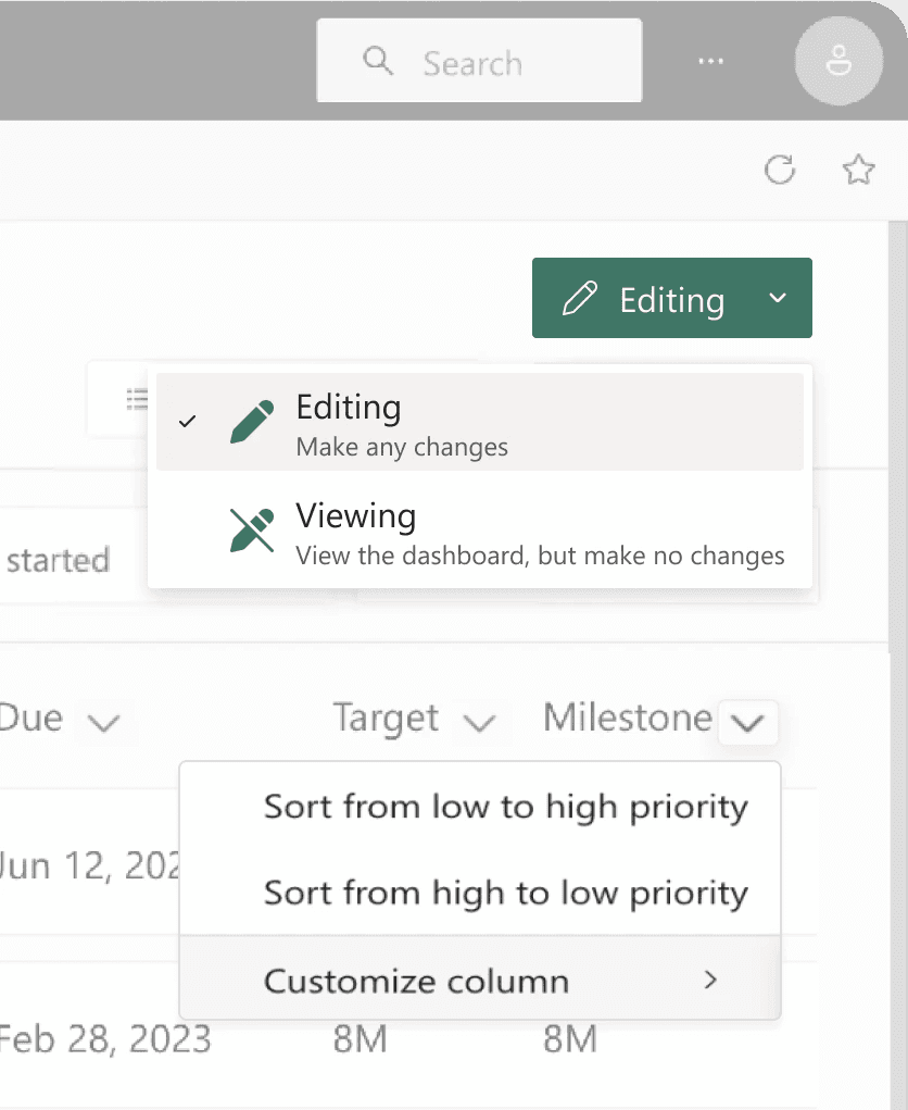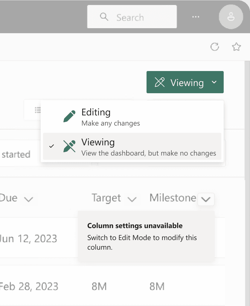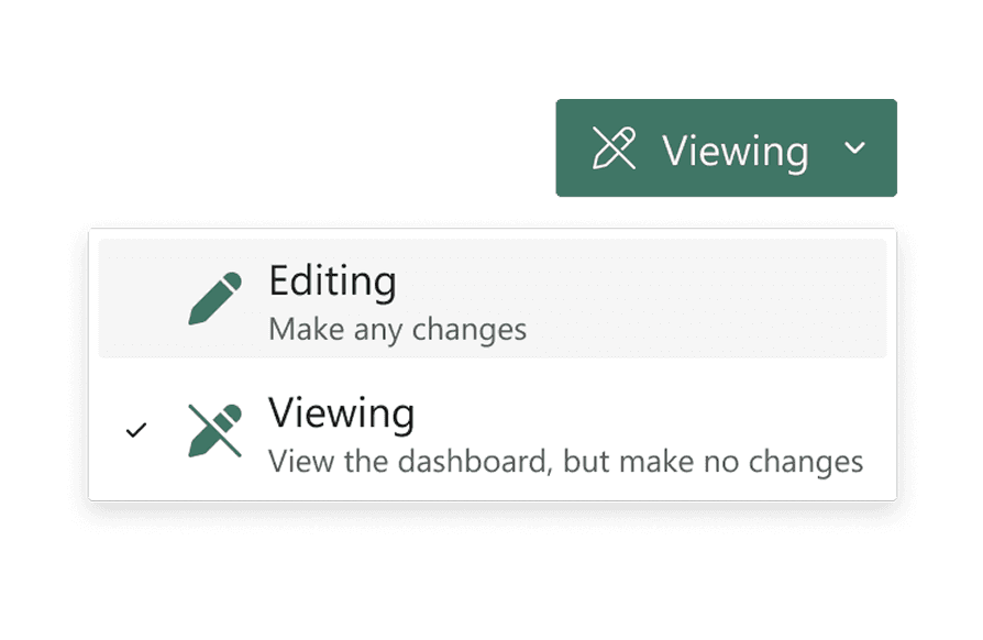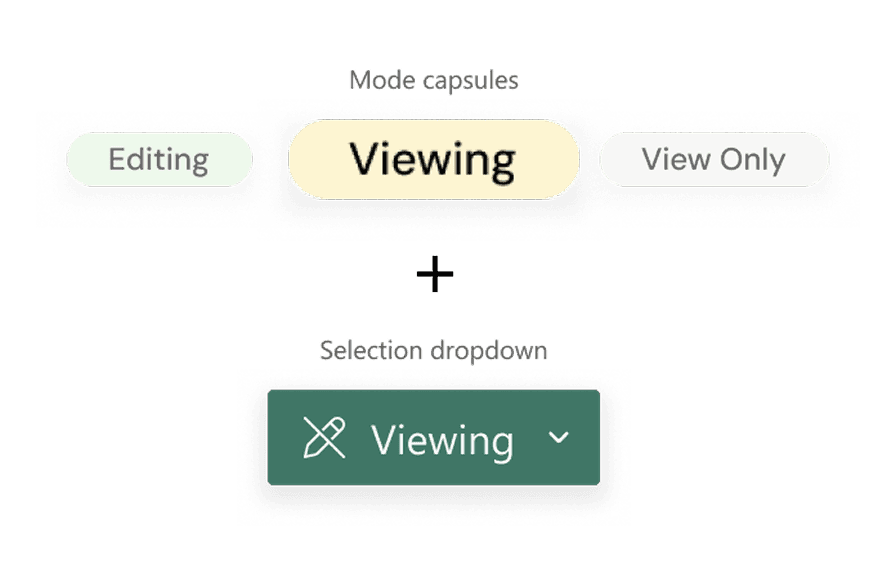 A dropdown switch aligns with Microsoft’s patterns, making it easy for users to move from View → Edit with confidence.