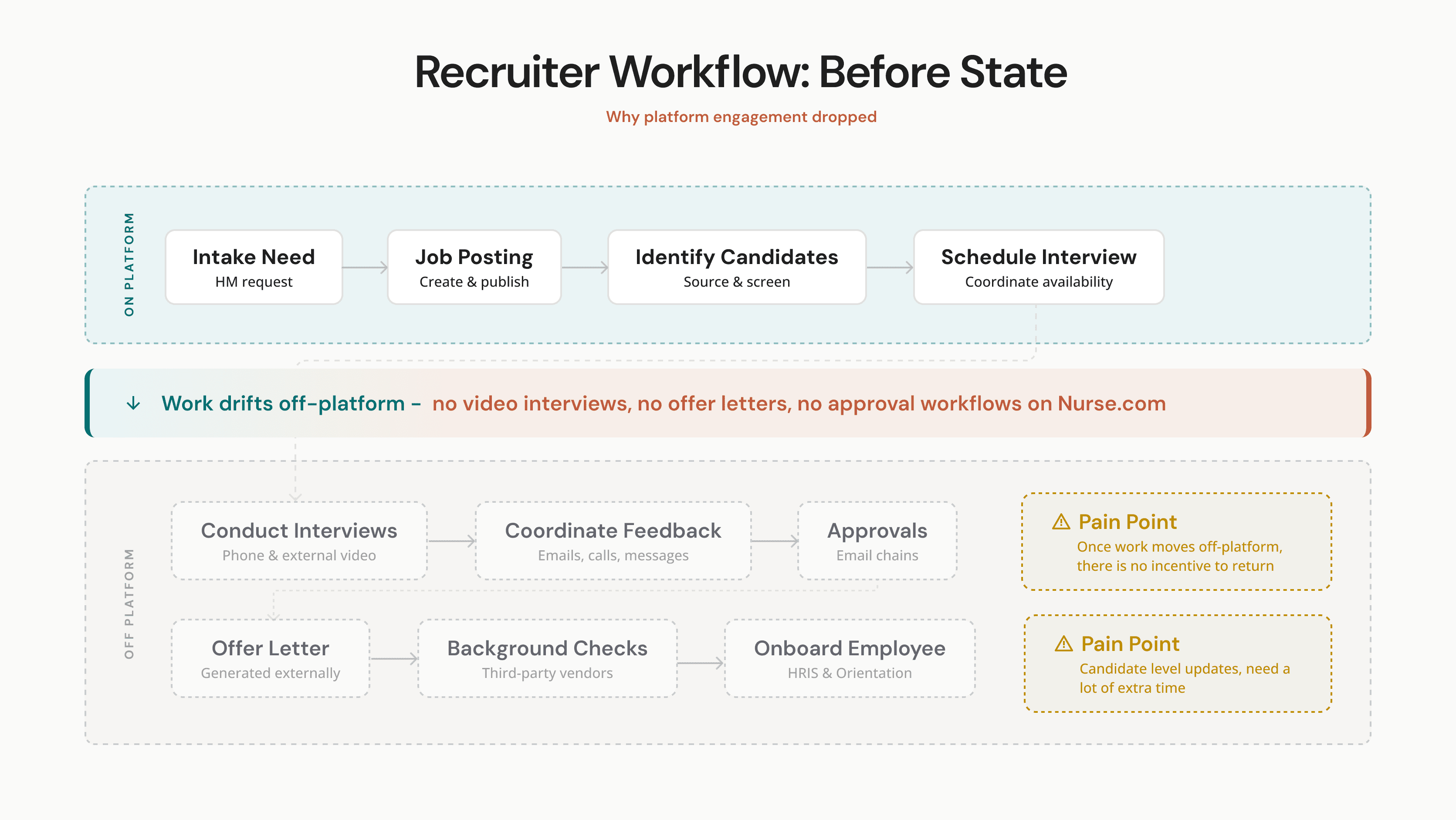 Returning to update statuses meant re-entering what they already knew from calls and emails. When they stopped, Nurse.com lost all visibility into pipeline health, candidate progress, and hiring outcomes.