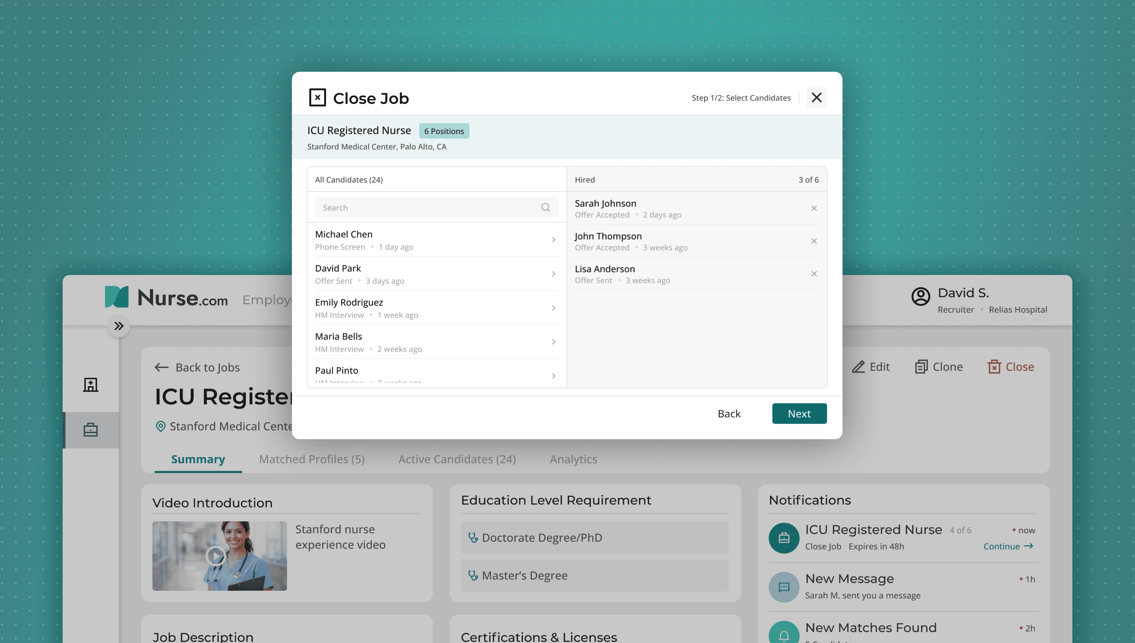 Helping nurse.com become where healthcare orgs hire, track, and plan.