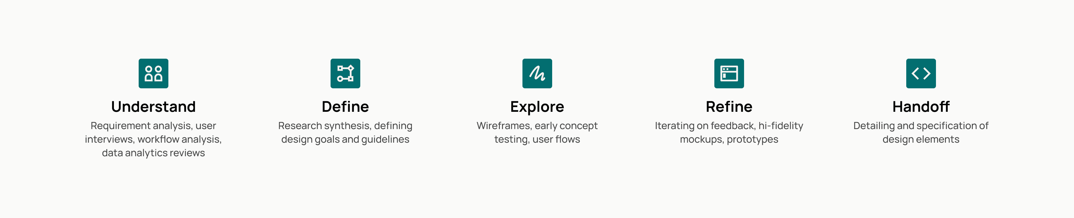 I adapt my design process based on the time, resources, and expected outcomes of my role. I adopted a fast-paced design process comprising of requirement analysis, user journey mapping, frequent collaborations and check-ins, rapid iterations of messy sketches and low-fidelity wireframes, and organized execution of high-fidelity prototypes and engineering hand-offs